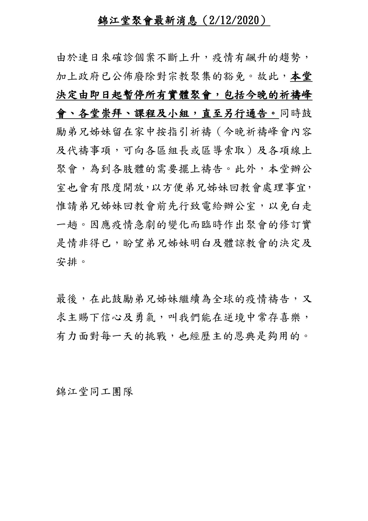 有關2019冠狀病毒~30.11.2020<特別通告>